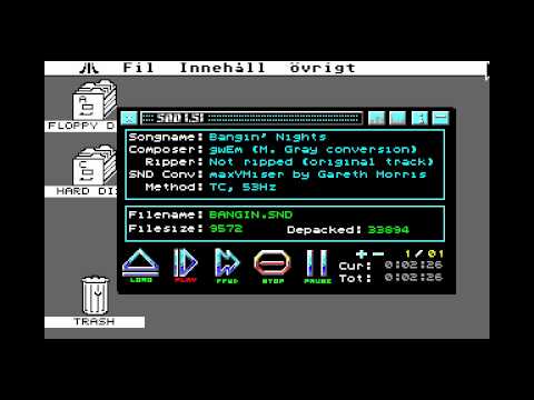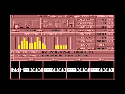 Synchron ASM Intro by 7an / Sync (Atari STE Audio Sculpture music) - "Music composed in Audio Sculpture on Atari STE, played in AS v1.1 in "STE HIFI 50KHZ" mode. - Made in early 1991 by 7an / Sync" - un saggio di quel che si poteva ottenere dal DMA sound chip (2 canali stereo - 8-bit PCM - 6.25/12.5/25/50 kHz) degli Atari STE