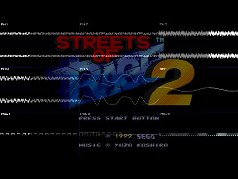 La colonna sonora di Streets of Rage 2 è il frutto della collaborazione tra Yuzo Koshiro e Motohiro Kawashima che firma Expander, Max Man e Little Money Avenue. Gli altri brani sono realizzati da Koshiro con un’unica BGM, Jungle Base, frutto della collaborazione tra i due musicisti. Il genere prevalente è definito dall’autore “hard-core techno”, etichetta facilmente applicabile a brani come Never Return Alive, Spin on the Bridge, Alien Power, To Deep, Jungle Base, Expander, Max Man e Revenge of Mr. X. Altre BGM, invece, sono caratterizzate da sound e ritmica più soft, come, ad esempio, l’irresistibile brano dance Go Straight (presente anche in una versione remixata ascoltabile solo nel sound test), impreziosito da intrigante panning synth riff, efficace uso dell’electric piano, ottimi bassi, gradevole ritmica e più che discreta varietà di sound e struttura. Koshiro, poi, mantiene un ottimo tessuto melodico in altri brani dance come la notevole Dreamer (particolarmente azzeccato, in questo brano, l’utilizzo dell’electric piano nell’ipnotico arpeggio), nella brillante Wave 131, nell’orecchiabile Under Logic (apparentemente ispirata a Move Any Mountain dei The Shamen, hit house-eurodance inglese datata 1991), nell’intensa ed incalzante Back to The Industry e in altri brani “lenti”, come l’atmosferica e sognante In the Bar, la godibilissima Slow Moon (ottimi piano riffs e piacevole ritmica dance-funky per una BGM pop che riprende anche la parte più melodica di Keep the Groovin’), la bellissima SOR Super Mix che remixa The Streets of Rage in un brano dalla melodia struggente (ottimo il sound dell’electric piano e ancora più marcate le assonanze con Sadness degli Enigma) e, come The Last Soul, in un drammatico crescendo. La colonna sonora è, in ogni caso, caratterizzata da una certa omogeneità di stile, con i brani più lenti e la gradevole parentesi dance-funk di Ready Funk e Little Money Avenue a bilanciare la prevalenza delle ritmiche techno, che, opportunamente, tendono a velocizzarsi verso ritmiche e sonorità hard-core nell’angosciante, ossessiva e “lancinante” Alien Power e nei brani degli ultimi stages, con la rapidissima Expander che, con il suo sound acido e distorto, anticipa le estremizzazioni del terzo episodio della serie. Particolarmente notevoli gli “energetici” boss themes, Never Return Alive e Revenge of Mr. X, le cui potenti ed incalzanti basi ritmiche si sposano con brevi sample vocali e superba sintesi per dar vita a due brani di pura adrenalina con, in più, un'efficace progressione drammatica ad impreziosire la seconda BGM e rendere, così, indimenticabile il confronto con Mr. X. Dal punto di vista tecnico, si nota un miglioramento della base ritmica con un drum channel (nei limiti del DAC channel del Mega Drive) nitido, corposo e potente, una sintesi più raffinata grazie anche ad un largo ed efficace utilizzo del panning e un conseguente sound più dinamico ed espressivo (sempre relativamente ad una FM synth). La valorizzazione dei chip audio è stata, quindi, ulteriormente perfezionata, complice anche la maggiore memoria a disposizione per le sample consentita dalla cartuccia da 16 Mbit. Il risultato è, dunque, una colonna sonora assolutamente perfetta e dalla resa affatto sorprendente (specialmente se si dispone di un subwoofer). Una OST insomma che testimonia come Yuzo Koshiro e Motohiro Kawashima abbiano veramente spinto l’hardware sonoro del 16 bit Sega ai suoi limiti. Chi poi apprezza la dance-hardcore-techno anni ’90non potrà rimanere deluso da questa eccezionale soundtrack.