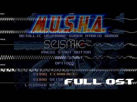 Il musicista Toshiaki Sakoda, già autore dalle OST di Aleste 2 (MSX2) e Devil's Crush (PC Engine), nonché, stando a quanto dichiarato in un'intervista, fan del chitarrista Michael Schenker, realizza per M.U.S.H.A. una serie di irresistibili BGM synth-metal, ottime quanto orecchiabili chiptune che danno un rilevante contributo all'appeal del gioco. Le adrenaliniche BGM del titolo Compile risultano infatti particolarmente incisive e calzano a pennello sulle dinamiche frenetiche di questo shoot 'em up.